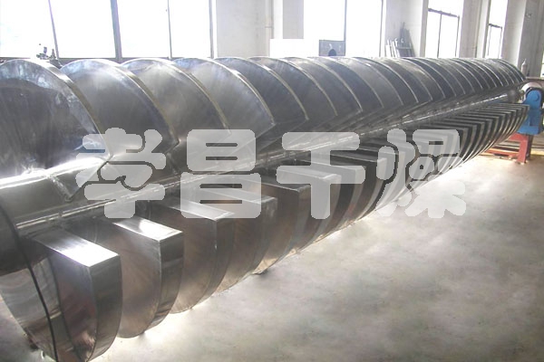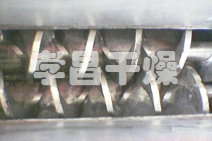 空心軸上密集排列著楔型中空漿葉,熱介質(zhì)經(jīng)空心軸流經(jīng)漿葉。單位有效容積內(nèi)傳熱面積很大,熱介質(zhì)溫度從-40℃到320℃,可以是水蒸汽,也可以是液體型:如熱水、導(dǎo)熱油等。間接傳導(dǎo)加熱,沒有攜帶空氣帶走熱量,熱量均用來加熱物料。熱量損失僅為通過器體保溫層向環(huán)境的散熱。楔型漿葉傳熱面具有自清潔功能。物料顆粒與楔型面的相對(duì)運(yùn)動(dòng)產(chǎn)生洗刷作用,能夠洗刷掉楔型面上附著物料,使運(yùn)轉(zhuǎn)中一直保持著清潔的傳熱面。漿葉干燥機(jī)的殼體為Ω型,殼體內(nèi)一般安排二到四根空心攪拌軸。殼體有密封端蓋與上蓋,防止物料粉塵外泄而充分發(fā)揮作用。